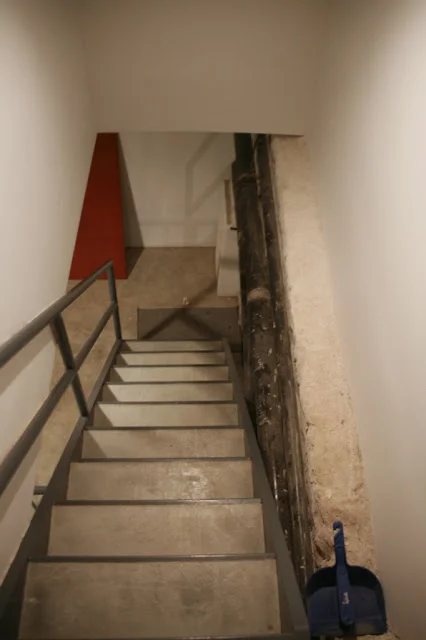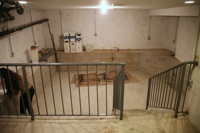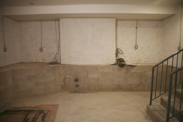 It's cold. Really really cold. So we honestly don't mind being indoors, much less buried a few feet below ground. So lucky us to be working on converting a rough, bare, dusty cellar into a modern open and inviting entertainment space. With an interesting sunken portion that gives the space a lot of headroom, we figured we could change the "swimming pool" feel into an ever-so-fresh den by removing the community metal railings, introducing wood to soften up the space but yet contrasting it with concrete and exposed brick.