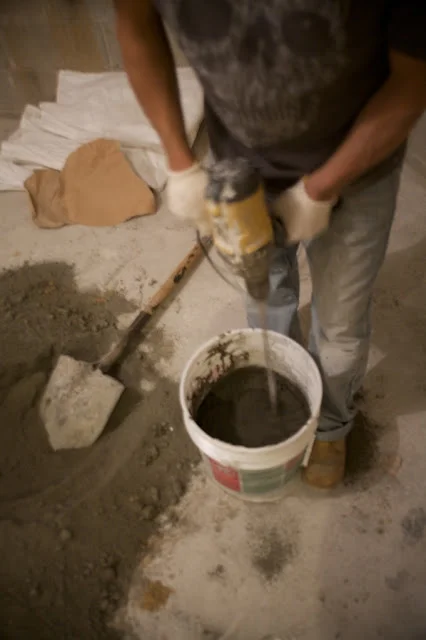 With decisions finalized, materials were ordered and the work begun! Materials arrived and the 4-man work crew commenced operations. Electrician, masons, and a tiler. Things moved extremely quickly til a leak was discovered, holding up progress a couple of days.