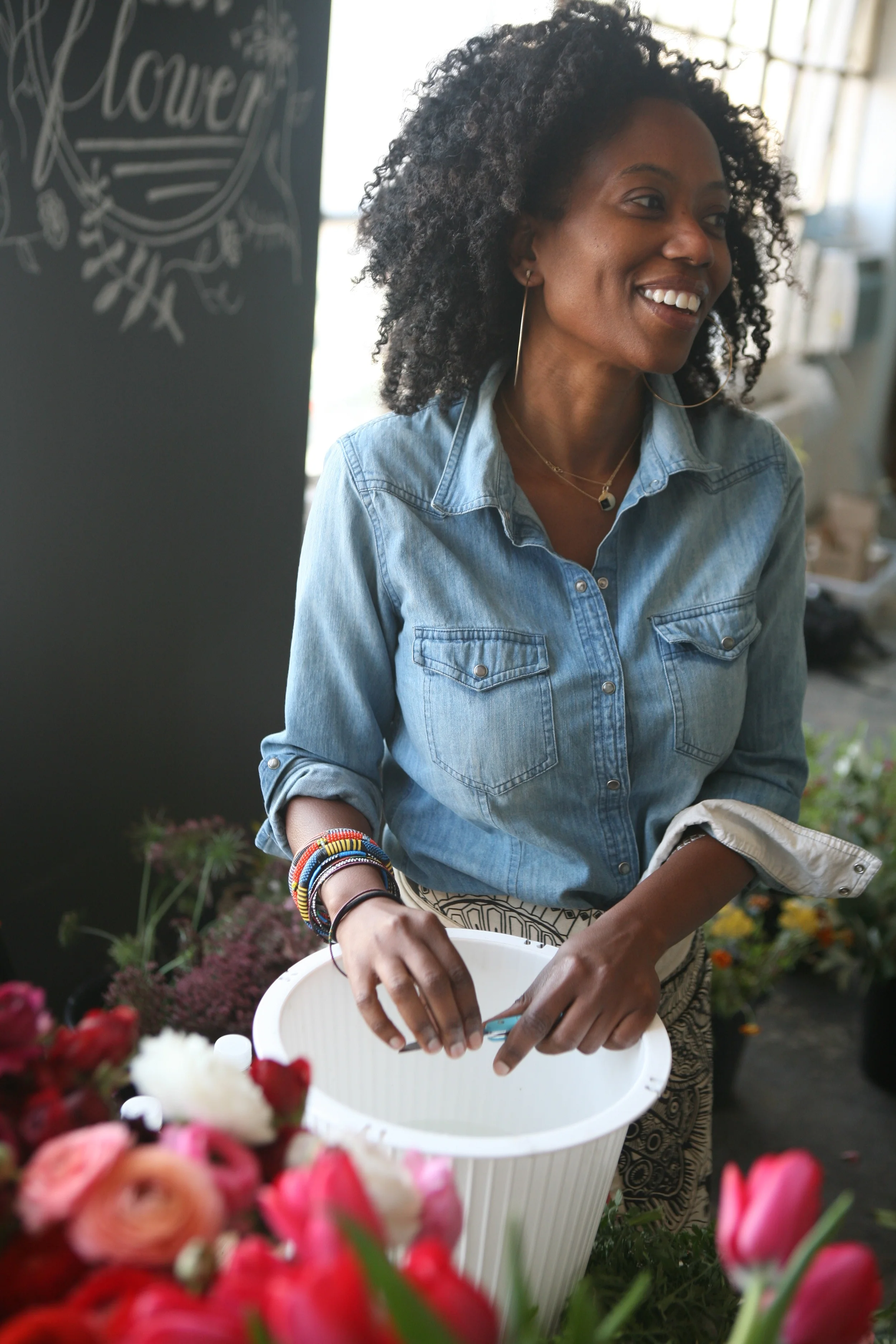 To meet Kat of Kat Flower is to love her. A beautiful pixie channeling her creativity into the art of floral design. We met up with this fun loving lady in her spacious studio in Crown Heights, Brooklyn as she assembled arrangements for an upcoming event. We chatted about everything including her return to marathon training, her envy-inducing travel itinerary and her amazing sense of style. All this while she deftly worked her tools making it seem as though the flowers were telling her exactly how they needed to be showcased. Read along to get a glimpse of this super-multi-talented, diminutive woman:
